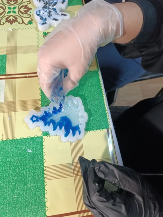 изготовили ёлочные игрушки из смолы — получились уникальные украшения, которые будут радовать в праздничные дни;