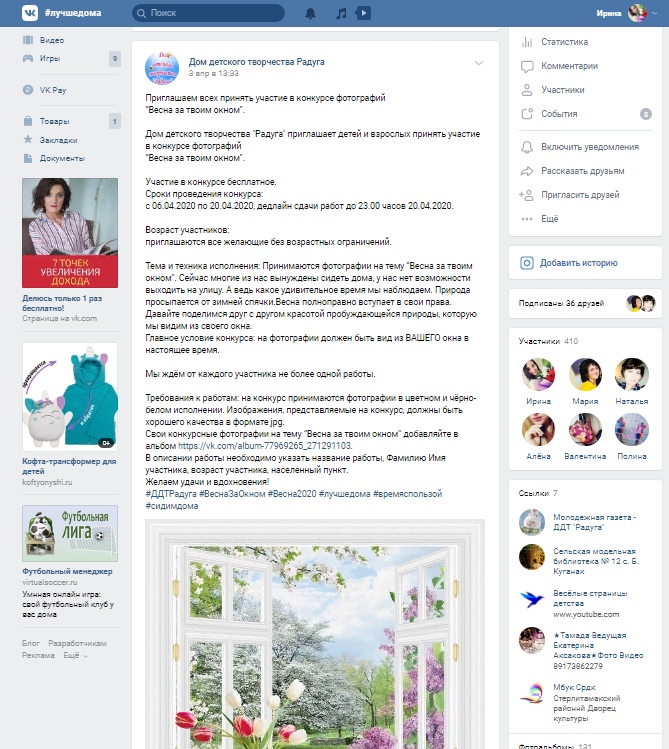 Кроме того в связи с дистанционным обучением в социальных сетях появилось большое количество конкурсов, акций, флэшмобов различного уровня. Педагоги и обучающиеся с удовольствием принимают участие в онлайн-мероприятиях.