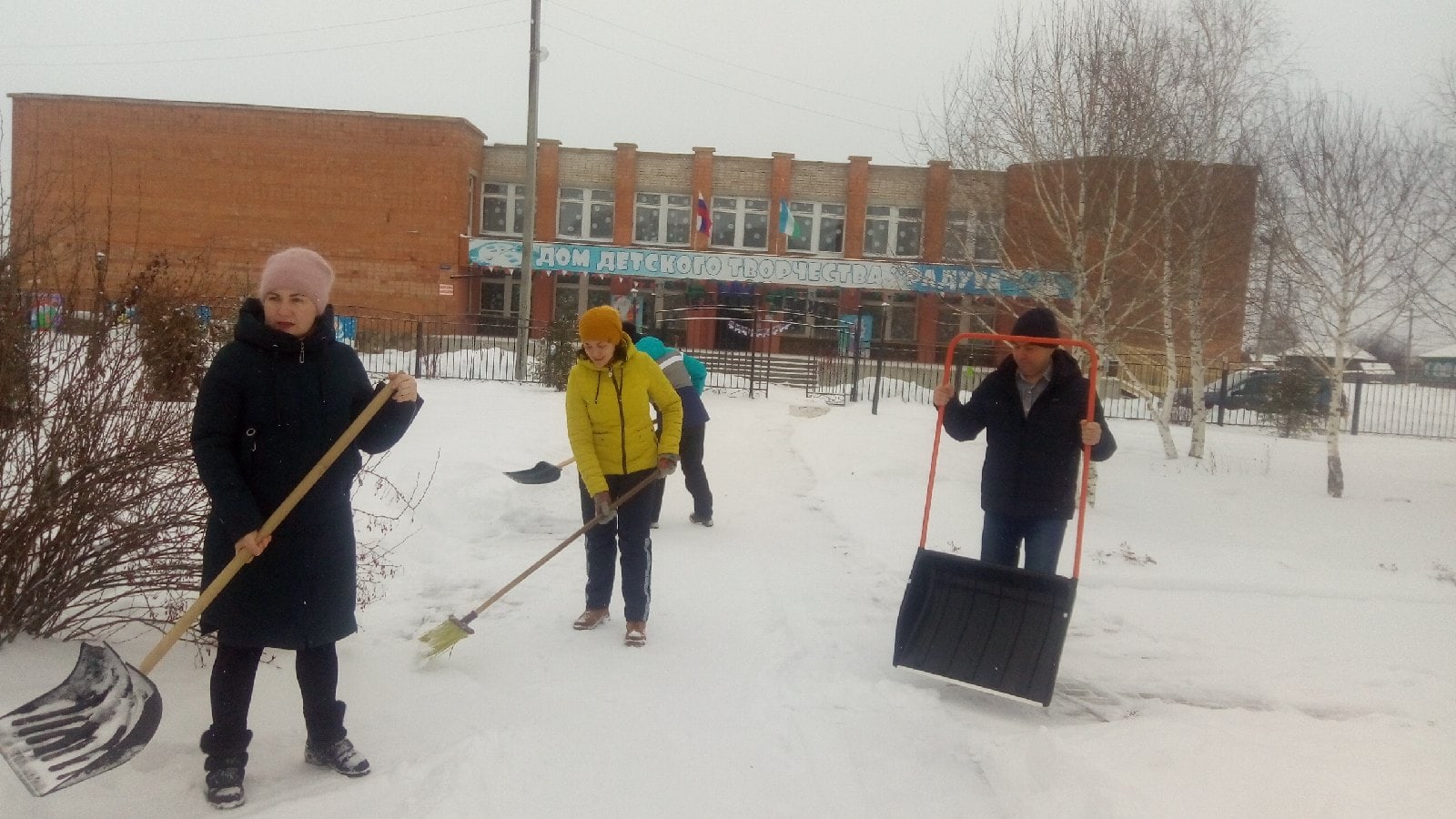 Сотрудники Дома детского творчества "Радуга" присоединились к Республиканской акции #ӨМӘ и совместно с работниками Куганакского сельского совета почистили дорожки в "Сквере Победы".