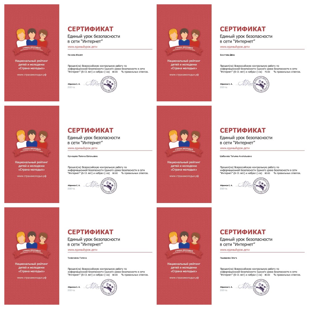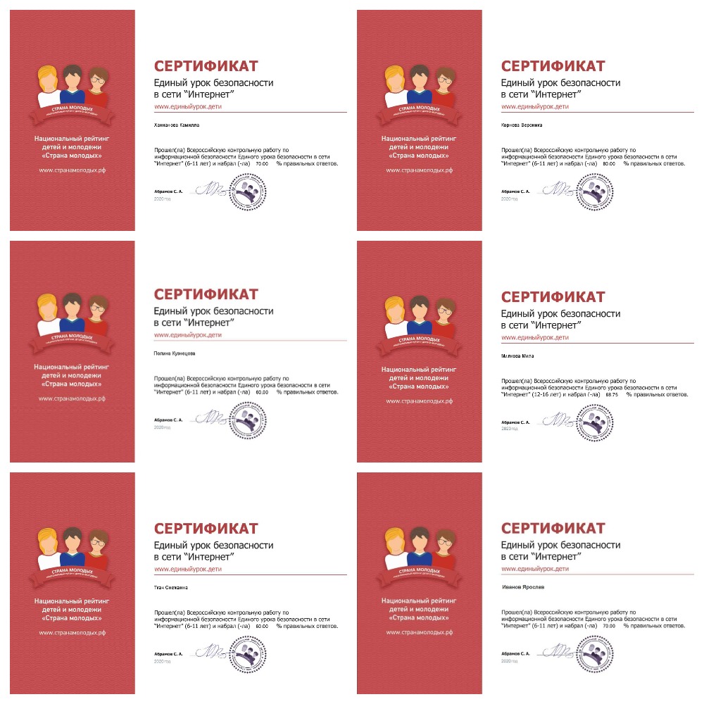 В рамках данного мероприятия обучающиеся Дома детского творчества «Радуга» приняли участие во Всероссийской контрольной работе по информационной безопасности на портале Единого урока для детей www.Единыйурок.дети. По окончании онлайн-теста все тестируемые получили сертификаты, позволяющие оценить их знания в области цифровой грамотности.