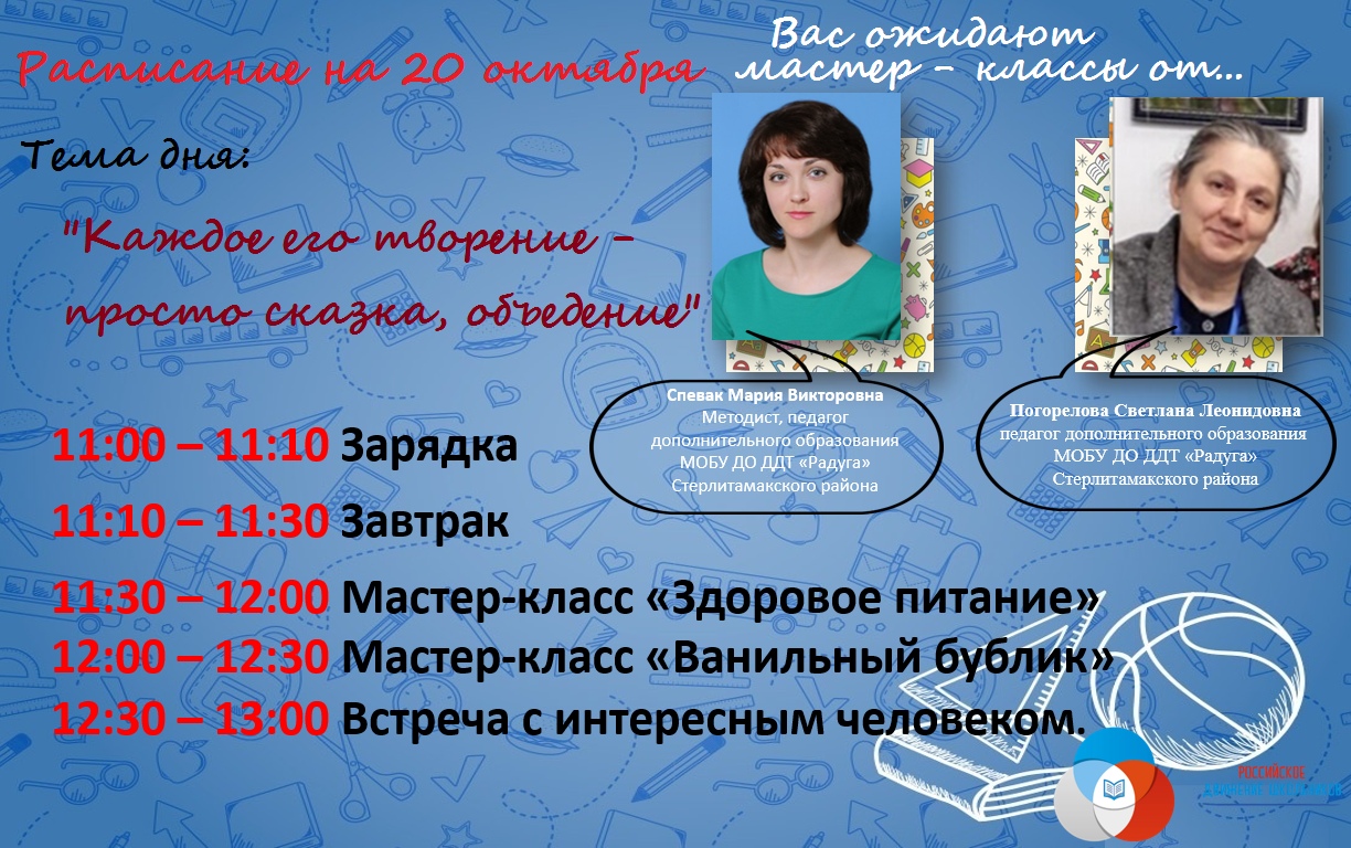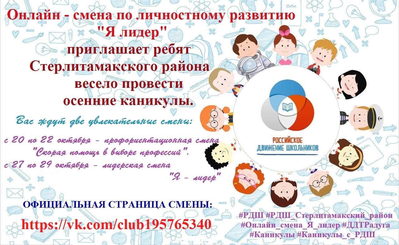 С 19 по 23 октября Дом детского творчества «Радуга» провел для всех желающих профориентационную онлайн-смену «Скорая помощь в выборе профессии». Каждый день онлайн-смены носил тематический характер: «Каждое его творение – просто сказка, объедение», «Проводник в мир книг», «Первым делом самолеты…». Состоялись онлайн-встречи с интересными людьми, в ходе которых обучающиеся познакомились со специалистами своего дела: поваром, библиотекарем, летчиком. Педагоги дополнительного образования МОБУ ДО ДДТ «Радуга» провели с ребятами веселые зарядки, увлекательные мастер-классы, интересные флешмобы. Итогом работы онлайн-смены стало создание творческого проекта – фотоколлаж «Я хочу стать…». Ребята активно и весело провели каникулярное время.