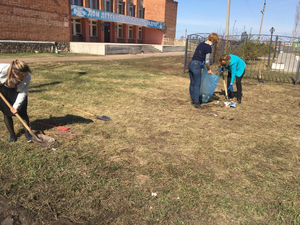 16 апреля 2021 сотрудники ДДТ "Радуга" и Куганакской сельской библиотеки принимали участие в проведении Дня чистоты на территории дома творчества: раскидывали снег, очищали территорию от мусора, сухой травы, обрубали кустарники.